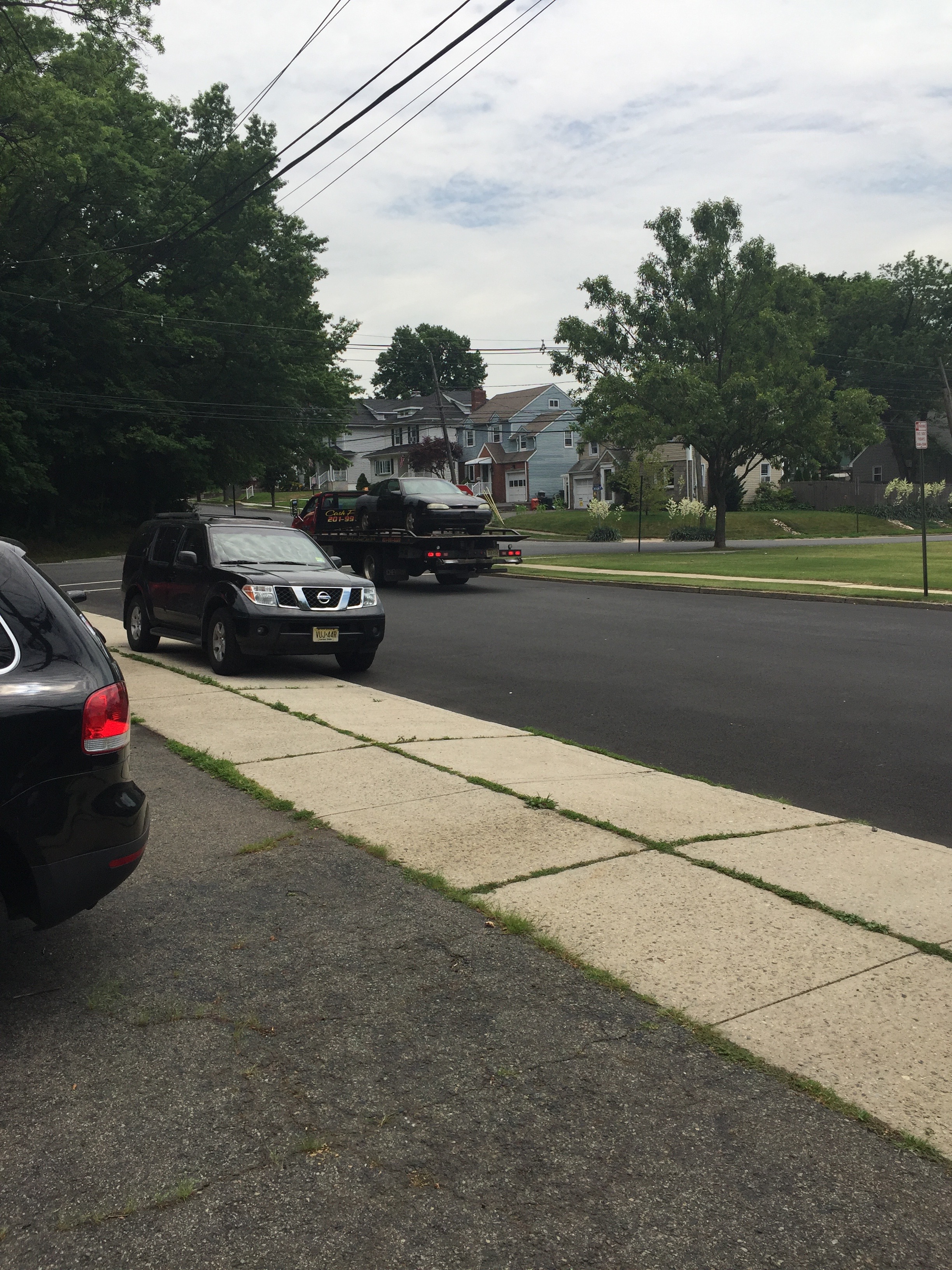 The last two years were just extra fun, especially for a do-it-yourself McGyver, like me. The ageing vehicle's computer failed and it would not communicate with the DMV's computer in Albany when I went for the yearly inspection. Instead of inspecting the car the old fashioned way, by eye and hand (isn't that what inspect means?) the state insisted that I replace the computer, at quite a dear price, or all subsequent inspections would fail, whether or not the vehicle was in perfect condition. Well, I'm an old anarchist from the '60s and that order was not going to fly. Yeah, I'm an outlaw! Come and get me! They can't get me! Thanks to PhotoShop and my excellent and lawful driving skills, my inspection sticker was handmade from 2014 until my registration came due in 2016. Then, the gig was up. If I were stopped and my registration checked, well, that would've meant the hoosegow for me. I had to throw in the towel. When my mechanic, Larry, (the best ever) told me that the repairs weren't worth it, I called Kars4Kids and the Black Attack made the supreme sacrifice. On Thursday, June 23rd, 2016, the wrecker drove her off.